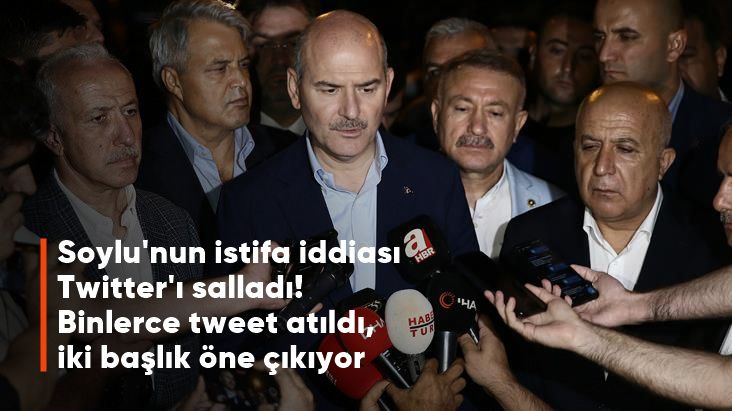 İçişleri Bakanı Süleyman Soylu'nun kabine toplantısında Cumhurbaşkanı Recep Tayyip Erdoğan'a istifasını sunduğu suçlaması gündeme bomba gibi düştü. Konuyla ilgili henüz resmi bir açıklama yok. Ancak iddianın sosyal medyada ortaya çıkmasından sonra kısa sürede 20 binin üzerinde tweet atıldı.
