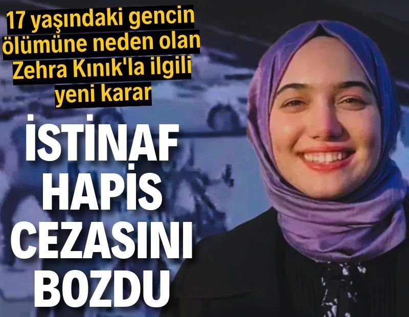 Batın Barlasçeki'nin (17) ölümüne neden olan eski Kızılay Başkanı Kerem Kınık'ın kızı Fatma Zehra Kınık'a verilen hapis cezası istinaf tarafından bozuldu.