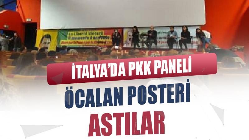 Modernissimo Sinema Salonu’nda gerçekleştirilen panele terörist elebaşı Abdullah Öcalan’ın posteri asıldı.