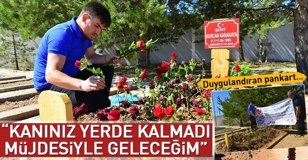 Hakkari’de PKK’lı teröristlerin saldırısı sonucu 11 aylık bebeğiyle şehit olan Nurcan Karakaya’nın eşi Astsubay Çavuş Serkan Karakaya, eşinin doğum gününü mezarı başında kutladı. Karakaya, “Ben bu yolculuğa seninle çıkmayı, bu yolu sadece senin elinden tutarak yürümeyi seçtim… İyi ki doğdun hatunum. Seni seviyorum…” yazılı pankartı eşinin mezarının üzerine bıraktı. Karakaya eşine “Sana “Katillerin öldürüldü, kanınız yerde kalmadı” müjdesiyle geleceğim bir tanem” dedi.