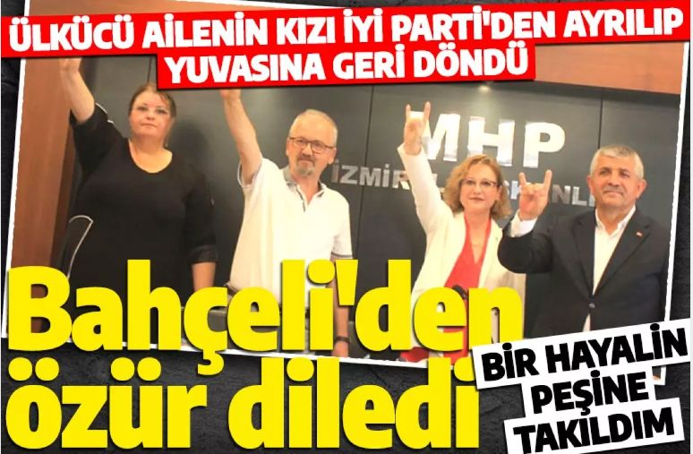 İYİ Partide Ülkücülerin sevilmediğinin altını çizen Yıldırım, "Tüm Ülküdaşlarımdan, özellikle Genel Başkanım Devlet Bahçeli'den tüm kalbimle özür diliyorum. Yuvaya dönmekten son derece gururluyum. Yuvamda şehrimize, insanlarımıza hizmete devam edeceğim."