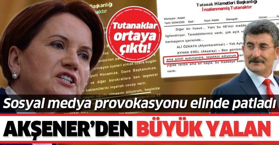 "Yalancısın Akşener. Adalet Komisyonu üyemiz, milletvekilimiz Halil Öztürk bey tutanakla İP Genel Başkanının iftirasına cevap vermiş. İfade ettiğimiz gibi; tutanakta, İP milletvekili Ayhan Erel meseleyi anladıklarını ifade ediyor ve açıklamalar için teşekkür ediyor..."