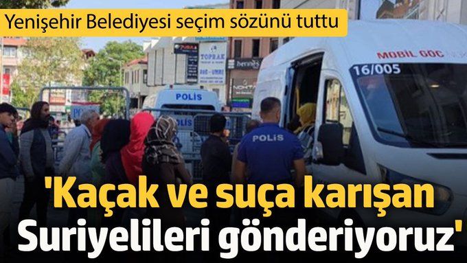 Başkan Özel, "Yenişehir’de hemşehrilerimizin asayiş, güven ve huzur ortamının bozulmaması için çalışmalarımız devam ediyor. Bu çerçevede, ilçemizin demografik yapısını bozan, yasa dışı yollarla ülkemize gelen, kaçak Suriyelilerin evlerine gönderilmesi için çalışmalarımızı hukuk çerçevesinde sıkı bir şekilde sürdürüyoruz. " diye konuştu.