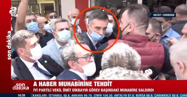 Bu kez de Hatay'ı ziyaret eden Akşener'in akrabası olduğu bilinen İYİ Partili vekil Ümit Dikbayır, bölgede görevini yapan A Haber muhabiri Halil İbrahim Uğur'u tehdit ederek yakasına yapıştı.