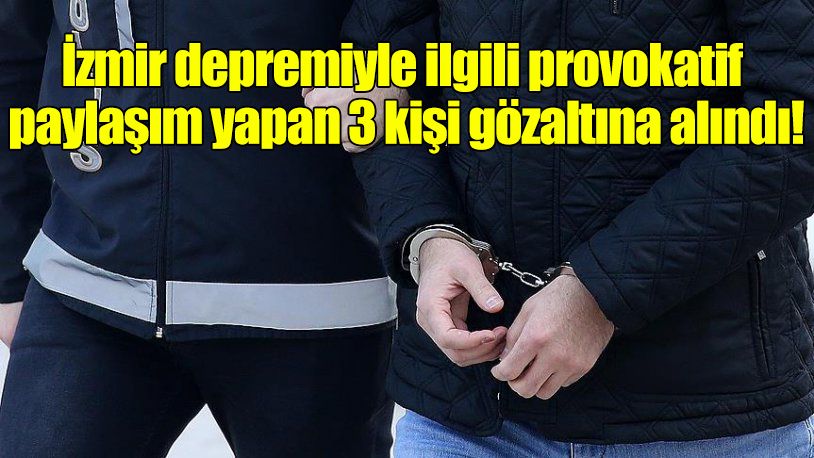 İçişleri Bakan Yardımcısı Muhterem İnce, İzmir depremine ilişkin sosyal medyadan provokatif paylaşımlarla ilgili 16 kişi hakkında işlem başlatıldığını, bu kapsamda 3 kişinin gözaltına alındığını bildirdi.