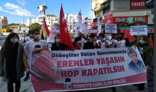 Türkiye Liseliler Birliği İzmir İl Teşkilatı, 18 Mart Çanakkale Zaferi’nin 106. yıldönümünde Karşıyaka Çarşı’da “Erenler Yaşasın, HDP Kapatılsın” çağrısıyla toplandı. Açıklamada, Çanakkale’de cepheye koşan onbeşlilerin ruhunu taşıdıklarını dile getiren Türkiye Liseliler Birliği ve Türkiye Gençlik Birliği, 7 Nisan 2021 tarihinde Ankara’da yapacakları HDP Kapatılsın Mitingi’ne İzmir’den genciyle yaşlısıyla onlarca vatanseveri götüreceklerini açıkladı.