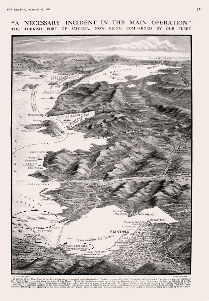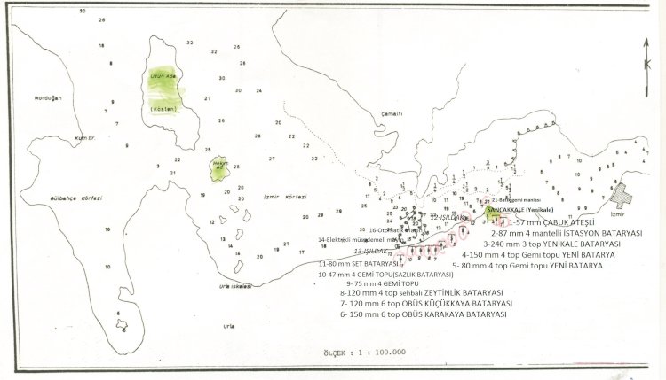 İtilaf Donanması Mart 1915 ‘de İzmir’e yaptığı saldırıda başarısız oldu, ancak İzmir Körfezini ablukaya aldı ve uzaktan bombardımana devam etti. Daha sonra AvusturyaMacaristan’dan getirilen yeni topların bir kısmı İzmir’e yerleştirildi. 17 toplu bir bataryanın Foça’da konuşlandırılması üzerine İtilaf Donanması İzmir bombardımanına son vermek zorunda kaldı.