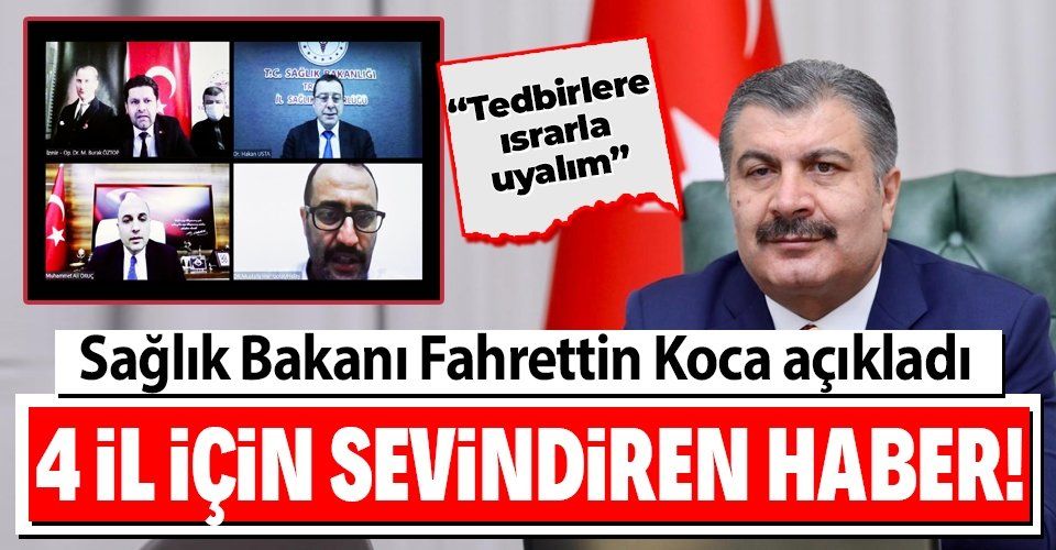 Bakan Koca, sosyal medya hesabından yaptığı paylaşımda, İzmir, Trabzon, Samsun ve Hatay valileri, il sağlık müdürleri ve halk sağlığı başkanlarıyla illerin koronavirüse ilişkin güncel durumunu ele aldıklarını belirtti.