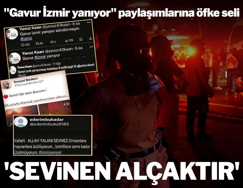 İZMİR’in Karşıyaka ilçesinde geçen salı günü başlayıp, perşembe günü harlanan orman yangını yerleşim yerlerini tehdit etmişti. Yaklaşık 4 bin hektarda ağaçları yutan, bitki örtüsünü yok eden, sayısız orman hayvanının ölümüne yol açan yangında kentin üstünü de duman bürümüş, küller evlerin üzerine yağmıştı. Pazar günü kontrol altına alınan yangın sadece İzmirlilerin değil tüm vatanseverlerin yüreğini dağlarken bazılarının ise hainliklerini ortaya döktü. Sosyal medyadan “Gavur İzmir yanıyor” paylaşımları ile Atatürk’e ve İzmir’e duydukları nefreti kusanlara vatandaşlar büyük tepki gösterdi. “İzmir yangınına sevinenler alçaktır” ifadesinin öne çıktığı tepkilerden bazıları şöyle: