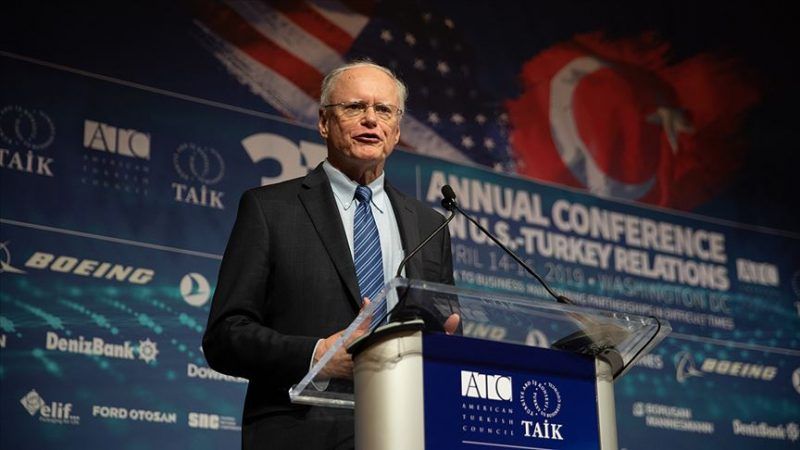 “Türkiye ile bu konuda bir süredir çalışıyoruz. Birçoğunuzun bildiği gibi 2014’te DEAŞ karşıtı koalisyonun parçası olarak temelde PKK bağlantılı birçoğu YPG/PYD’li yerel güçlere destek vermek için Suriye’ye girdik, buraya daha sonra Arap savaşçıların da katıldığı SDG de dahil oldu ve çok etkiliydi. 2018’de ilkbaharın sonlarına doğru Türker ile Münbiç konusunda anlaşmaya çalıştık çünkü Türkler haklı olarak PKK yüzünden 1984’ten beri binlerce kişiyi kaybettiği ve PKK ile bağları olan güçler konusunda endişeleri var. Suriye’nin kuzey doğusundaki insanlarla konuştuk, birçok grup var ve hepsi de öyle ya da böyle Türklerin endişelenmek için bir nedeni olduğunu anlıyor. Türklerin elbette askeri seçeneği var. Bunu, Afrin’de Cerablus’ta ve elBab’da PKK ve DEAŞ’lı olduğunu düşündükleri unsulara karşı yaptılar. Her ikisine de saldırı düzenlediler.”