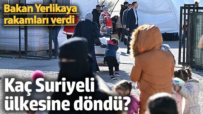 İçişleri Bakanı Ali Yerlikaya, 9 Aralık 2024'ten bu yana 81 bin 576 Suriyelinin ülkesine gönüllü olarak döndüğünü söyledi.