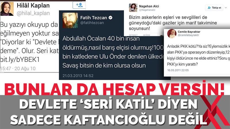 Canan Kaftancıoğlu’nun geçmiş yıllarda devlete hakaret eden ve terör örgütlerini öven paylaşımlarına ceza gelmesi üzerine sosyal medyada vatandaşlar benzer söylemlerle terör örgütlerini öven diğer troll’lerin de cezalandırılmasını istedi. Kaftancıoğlu’nun ceza alması üzerine sosyal medyada Fatih Tezcan, Hilal Kaplan, Cemile Bayrakar ve Nagehan Alçı’nın devlete hakaret edip terör örgütlerini savunan paylaşımları yeniden gündeme geldi. Vatandaşlar, bu isimlerin de yargılanmasını istiyor. İşte o rezil paylaşımlar: