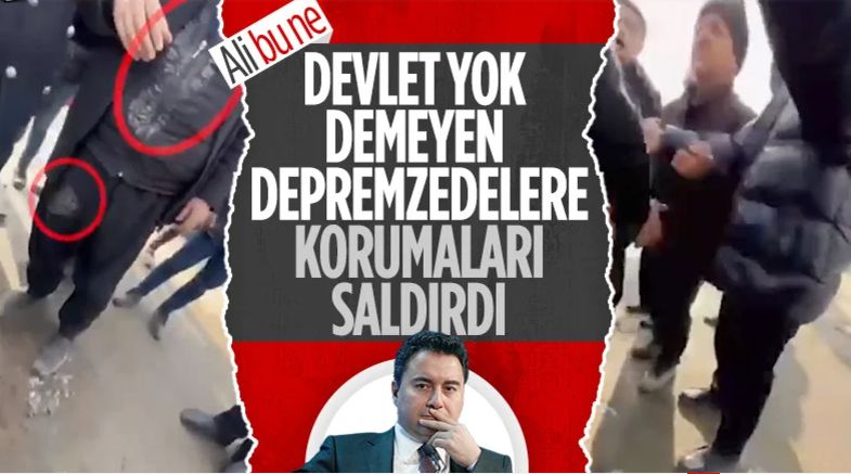 DEVA Partisi Lideri Ali Babacan'ın korumaları, Kahramanmaraş'ta yakınlarını kaybeden depremzedeyi tekmeledi.