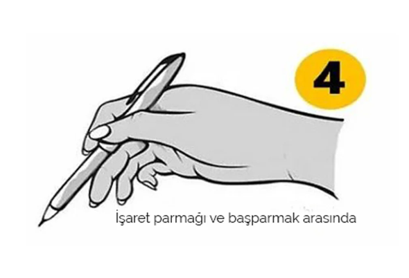 İŞARET PARMAĞI İLE BAŞPARMAK ARASINDA Kaleminizi işaret parmağınız ile baş parmağınız arasında tutarsanız, kalem tutma tarzı kişilik özelliklerin gizemli biri olduğunu ortaya koyuyor. İnsanlar ve şeyler hakkında yeni şeyler öğrenmeyi ve kendiniz hakkında çok fazla veya hiçbir şey söylemeden yeni deneyimler kazanmayı seviyorsunuz. İnsanlara kendi hızınızda ve ruh halinizde karışıyorsunuz. Bazen dışa dönük, bazen de sessizce oturup her şeyi gözlemleyeceksiniz. Yine de bir şekilde bir eğlence ortamının hayatı oluyorsun. Bilgiyi özümsemek için sonsuza kadar açsınız. Yeni konseptler ve yeni yerler keşfetmeyi seviyorsunuz. Ancak duygusal olarak çok korunuyorsunuz. Gerçek duygularınızı açığa çıkarmakta zorlanabilirsiniz. Büyük olasılıkla duygularınızı bastıracak ve yalnız zamanınızda onları çözeceksiniz. İncindiğinde susmayı tercih edersin. Dağınık olduğun zaman insanların görmesini seviyorsun. Herkesin hayatta ne kadar yüksek ruhlu olduğunuzu görmesini istersiniz.