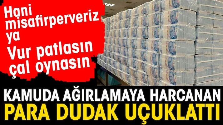 Kamuda ağırlama giderleri vur patlasın çal oynasın dercesine dudak uçukladı. Hani misafirperveriz ya. 6 ayda kamuda ağırlama gideri 5,6 milyar lira olarak gerçekleşti. Ekonomi uçuruma sürüklenirken bu yılın ilk yarısında 216,4 milyar TL’lik kamu alımı yapıldı. Kamu alımlarının 13,8 milyar TL’si ihalesiz, doğrudan temin ile gerçekleşti. 48,2 milyar TL’lik alım için de pazarlık yöntemi kullanıldı. Kamuda ağırlamaya harcanan para ise 6 ayda 5,6 milyar TL oldu.Bu parayla neredeyse Osmangazi Köprüsü'nün dörtte bir yapılırdı.