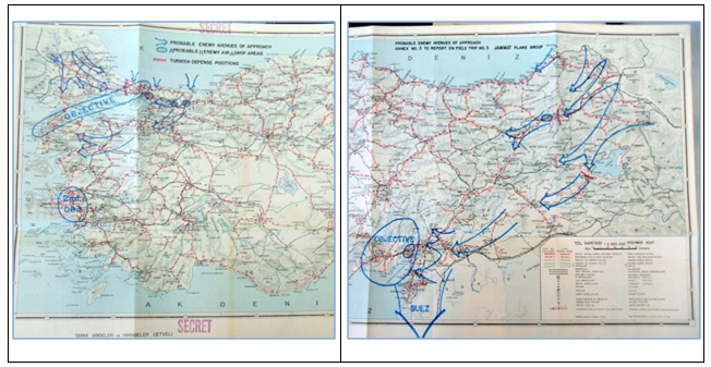 JAMMAT Planlama Grubunun 3 nolu saha çalışmasıyla ile ilgili raporunun 3 nolu ekinde verilen bu haritalarda [[2]], (ki bu haritalar, Türkiye karayolları haritaları olup “GizliSECRET” olarak damgalanmıştır) Varşova Paktı kara kuvvetlerinin muhtemel saldırı yolları ve hava indirme bölgeleri işaretlenmiştir.