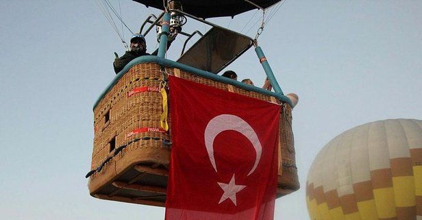 Peribacaları ile ünlü Kapadokya bölgesinde, yerli ve yabancı turistlerin büyük ilgi gösterdiği sıcak hava balonları, güneşin ilk ışıklarında 29 Ekim Cumhuriyet Bayramı dolayısıyla sepetlerine Türk Bayrağı asarak havalandı. Türk Bayrakları peribacaları arasında dalgalanırken onlarca balonun Kapadokya semalarındaki görüntüsü eşsiz bir manzara oluşturdu.