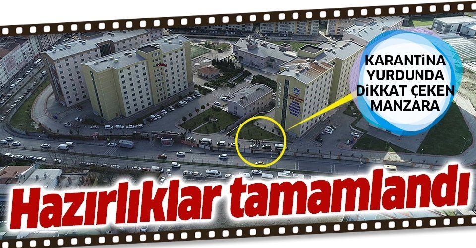 Yurt dışından gelecek ve 14 gün boyunca gözetim altına alınacak vatandaşlar için tahsis edilen öğrenci yurtlarında hazırlıklar tamamlandı. Yurt çevresinde güvenlik güçlerinin nöbet tuttuğu görülürken, yurtlar havadan görüntülendi..
