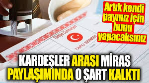 Kardeşler arası miras paylaşımında o şart kaldırıldı!