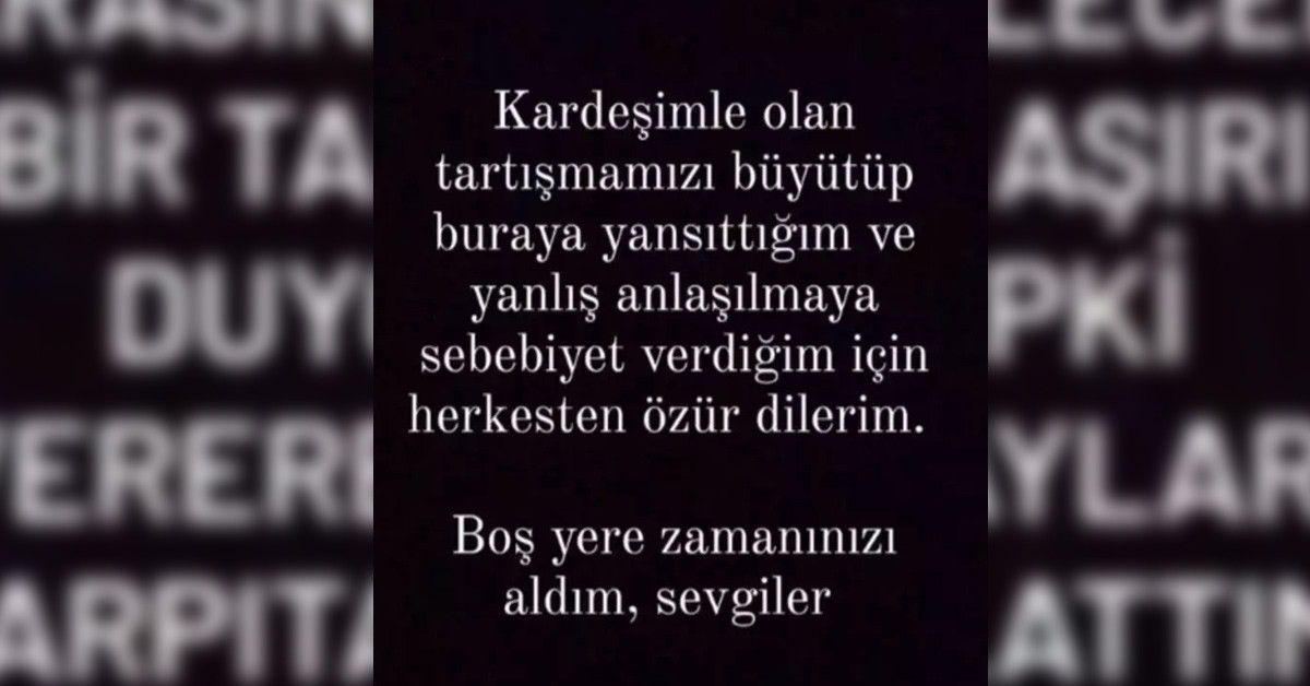 Kan donduran bu iddialar sosyal medyada büyük yankı uyandırırken birkaç saat önce gözyaşları içinde korkunç iddialarda bulunan ablanın hesabından bir anda özür mesajı paylaşıldı. Olayları çarpıtarak anlattığını söyleyen Onur Seyit Yaran'ın ablası yanlış anlaşılmaya sebebiyet verdiği için özür diledi