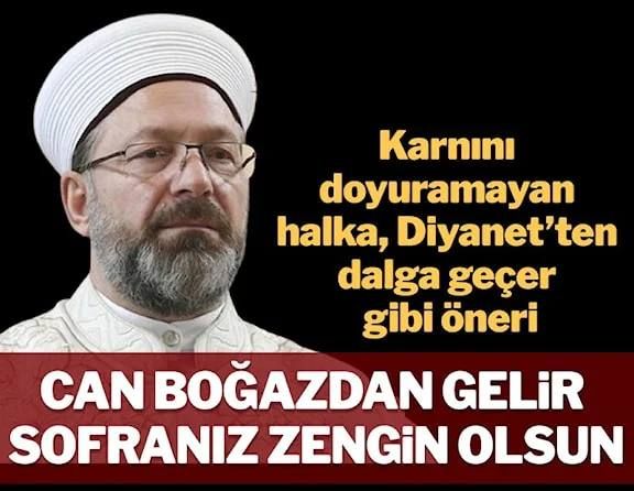 “İnsanın yiyeceğine önem vermesiyle güçleneceğini anlatmak için ‘Can boğazdan gelir ya da geçer' deriz. Sağlığımız için gerekli besinleri vaktinde ve yeterince almamız hayati önem taşır. Bu atasözünü meseleyi önemsiz gören insanları uyarmak için kullanırız. Sağlıklı ve dengeli beslenmenin ölçüsü, vücudun gereksinim duyduğu gıdaları yemektir. Önemli olan Allah'ın helal ve temiz kabul ettiği şeylerden yemek ve israfa kaçmamaktır. Allah aşırılıktan uzak duran, ölçüyü kaçırmayan ve haddini aşmayan kullarını daha çok sever. O hâlde bu sevgiyi kazanmak için sadece bedenimizi beslemeyelim. Ruhumuzun gıdası olan namaz, oruç gibi ibadetleri emredildiği şekilde yapalım, beden ve ruh sağlığımız bozulmasın. Sofralarımız zengin, gönüllerimiz engin olsun.” Diyanet'ten gelen bu uyarı, akıllara ekmek bile alamayan on binlerce vatandaşı getirdi. Türkiye'de yoksulluk sınırının altında yaşamaya çalışan 3 milyon 615 bin 670 hane var. 4 milyon hane ise temel gıda gereksinimini karşılayamadığı için devletten yardım alıyor.