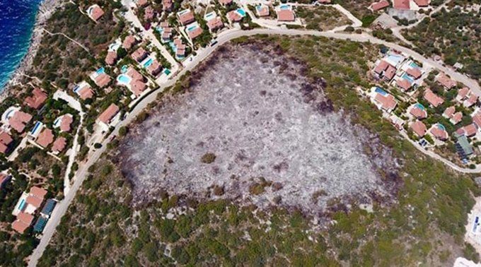 Antalya'nın Kaş ilçesinde 23 Mayıs'ta gece saatlerinde ormanlık alanda başlayan yangın, ekiplerin yoğun çabası sonucu villaların bulunduğu alana 20 metre kala kontrol altına alınmıştı. 25 dönüm makilik ve zeytinlik alan zarar görürken, yangının aydınlatma direğindeki ampulün kısa devre yapması sonucunda çıktığı öne sürülmüştü.