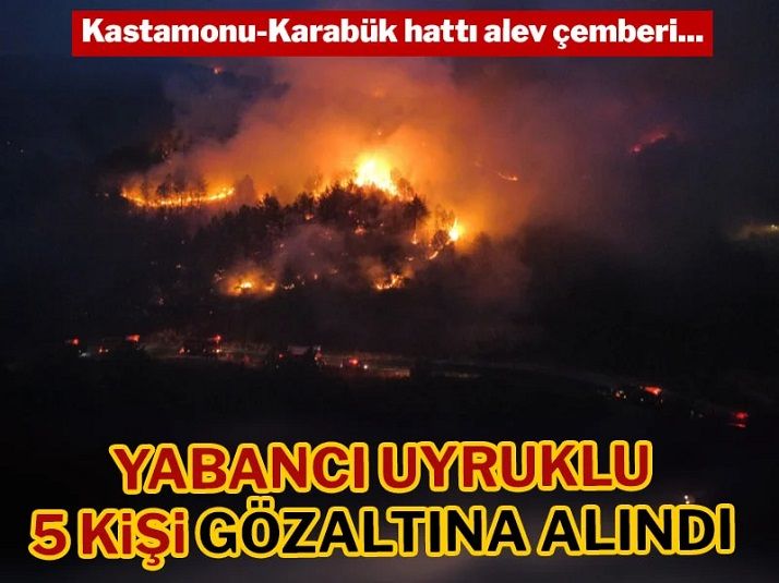 Karabük'te 4 gündür söndürülmeye çalışılan yangınla ilgili ise yabancı uyruklu beş kişi gözaltına alındı.