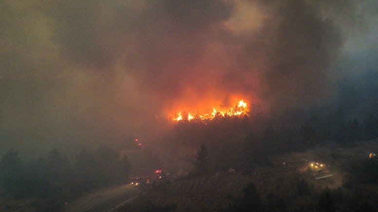Ekipler yangını havadan ve karadan müdahaleyle kontrol altına almaya çalışıyor.