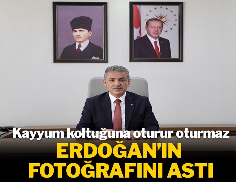 İçişleri Bakanlığı sabah saatlerinde DEM Partili üç belediyeye kayyum atadı. Mardin Büyükşehir Belediyesi'ne Ahmet Türk yerine kayyum olarak atanan Tuncay Akkoyun ilk iş olarak makama Cumhurbaşkanı ve AKP Genel Başkanı Recep Tayyip Erdoğan'ın fotoğrafını astı.