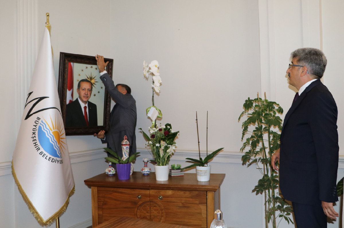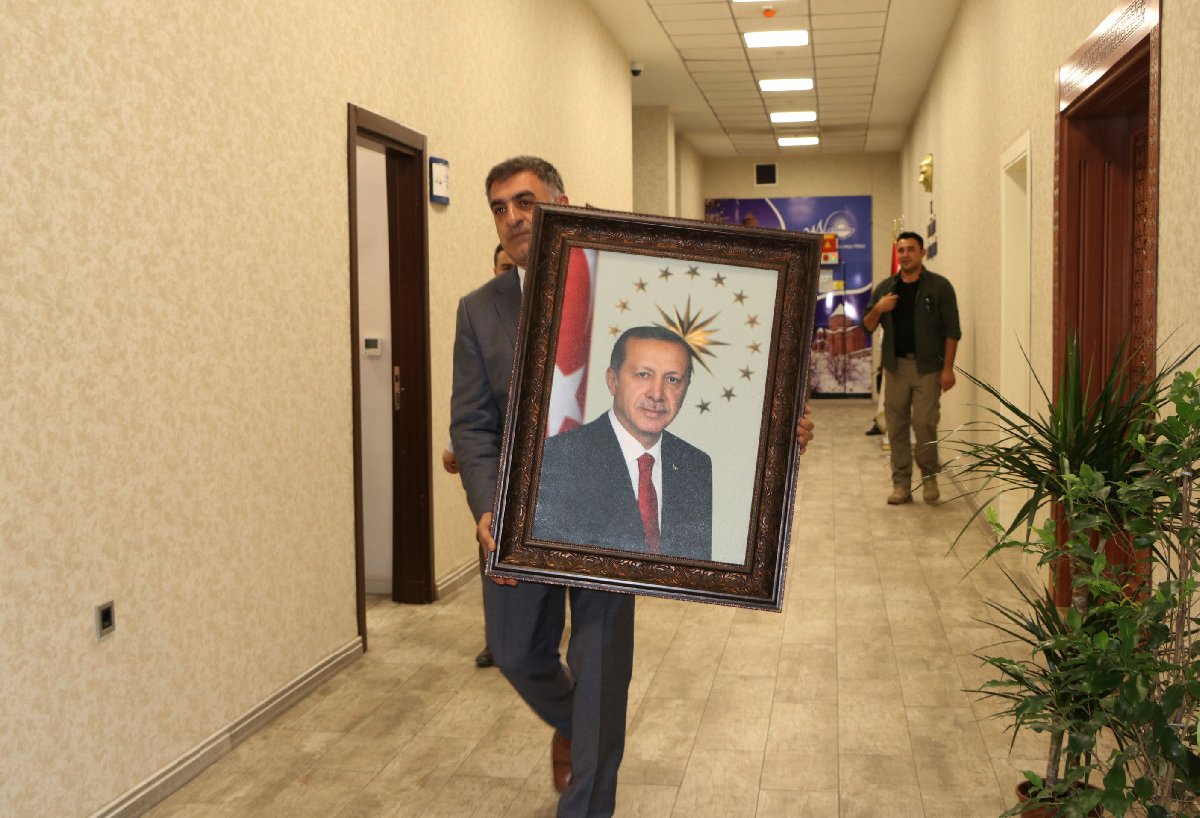 Cumhurbaşkanı Erdoğan’ın fotoğrafıyla ilgili soru üzerine Vali Bilmez, “Cumhurbaşkanı’nın fotoğrafı daha önce asılıydı; ancak indirilmişti. Biz de o fotoğrafı cumhuriyetimizin kurucusu olan Atatürk’ün fotoğrafının yanına tekrardan astık” dedi.