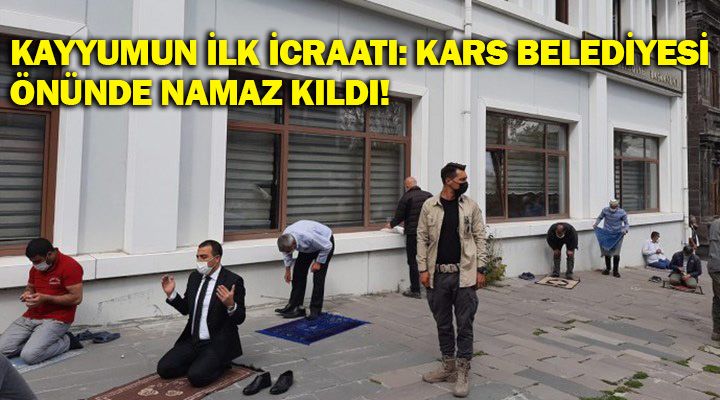 Kars Belediyesi’ne kayyum olarak atanan Vali Türker Öksüz, Yeni Yaşam'ın haberine göre ilk iş olarak belediye önünde Cuma namazı kıldı.