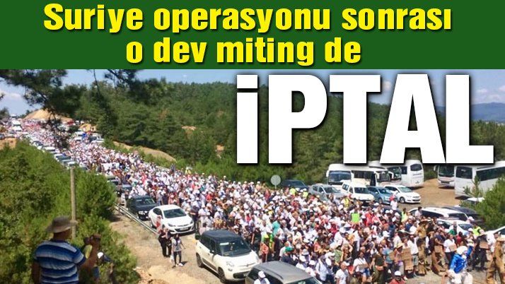 Kaz Dağları'ndaki doğa katliamına karşı tarihi direniş sergileyen “Su ve Vicdan Komisyonu” yurdun dört bir yanından onbinlerce yurttaşın katılması beklenen büyük mitingin iptal edildiğini yazılı bir açıklamayla duyurdu. Kararın, tüm bileşenlerin ortak aklına dayanılarak alındığının belirtildiği açıklamada, “Ülkemizin Suriye topraklarında askeri bir harekat başlatması nedeniyle milli birlik ve bütünlük oluşturmak gerekliliği ve içinde bulunulan hassasiyet göz önüne alındı. Marmara Belediyeler Birliği ve Çanakkale Belediye Başkanı’nın görüşmesi sonucunda iptal edilmesinin uygun olacağı değerlendirildi ve iptali yönünde karar alındı” denildi.