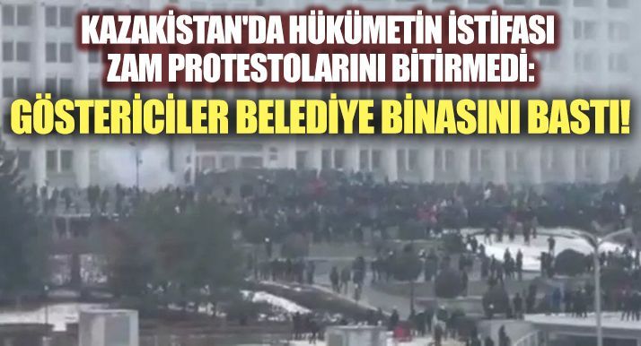 İki gündür aralıksız devam eden gösteriler, hükümetin istifasına rağmen bugün öğlen saatlerinde şiddetini artırdı. Ülkenin en büyük kenti Almatı'da göstericiler, belediye binasına baskın düzenledi.