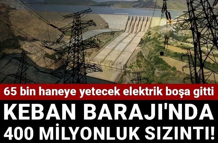 Türkiye’nin en büyük ikinci hidroelektrik santrali olan Keban Barajı’nda yaşanan su sızıntılarının, her yıl milyonlarca kilovatsaat elektrik kaybına yol açtığı belirlendi. Sayıştay’ın Elektrik Üretim A.Ş. (EÜAŞ) raporuna göre; baraj dip savakları, su iletim yolları, baraj gövdesindeki çatlaklar ile vana ve ayar kanatlarından kaynaklanan sızıntılar üretimde ciddi verim kaybı yaratıyor.