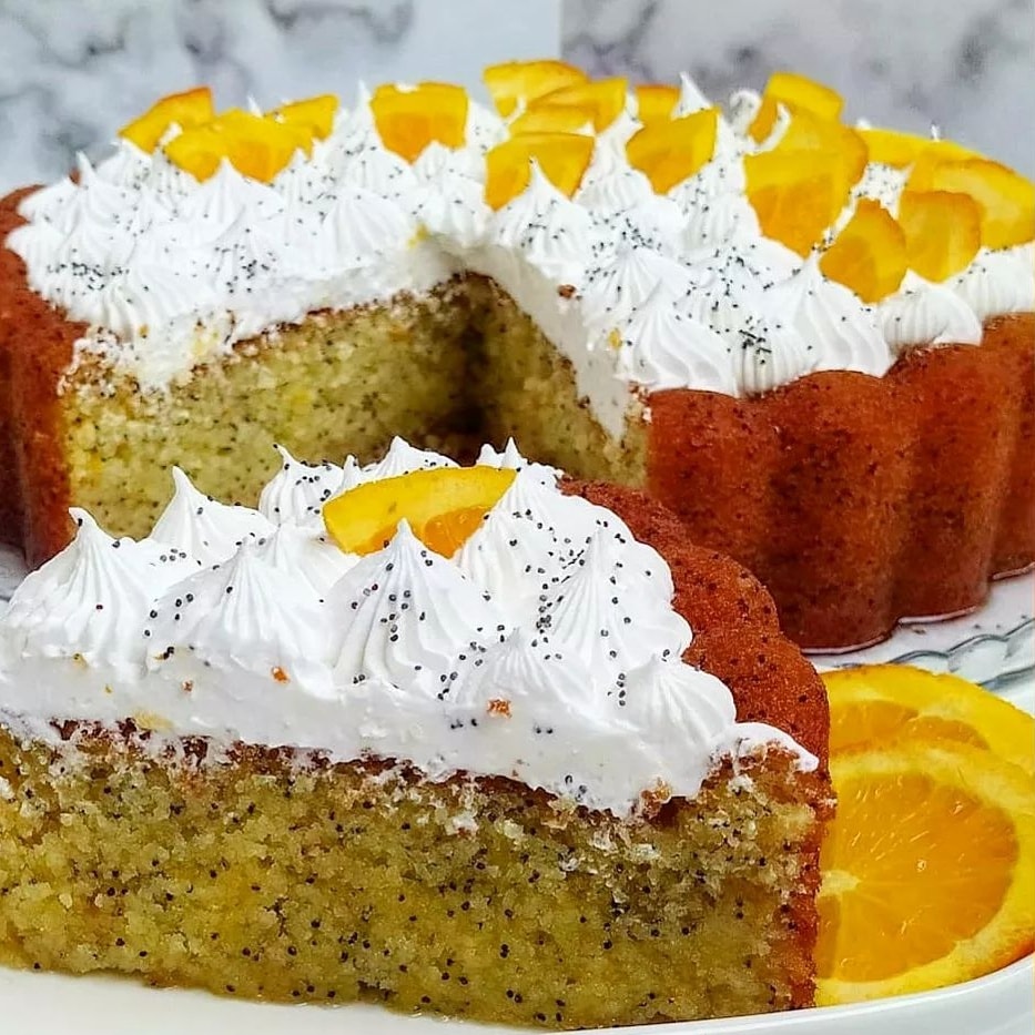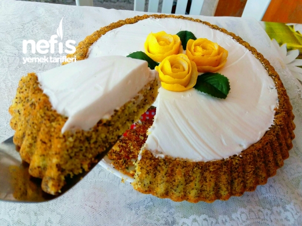 şeker yumurta en az beş dk çırpılır krema kıvamında sonra sırayla sıvıyağ portakal suyu ilave ederek karıştırılır irmik vanilya eklenir karıştırılır unu ve kabartma tozu elekten geçirip azar azar ilave ederek spatula ile karıştırılır en son portakal kabuğu rendesi mavi haşhaş eklenir spatula ile karıştırılır yağlanmış yuvarlak kek kalıbına dökülür ısıtılmış 180 derecelik fırında kurdan temiz çıkıncaya kadar pişirilir kontrolü fırından çıkarıp biraz ılıdıktan sonra soğuk şerbeti heryerine dökülür dinlemeye bırakılır tamamen çektikten sonra ters çevirip servis tabağına alınır üzerine kreması sıkılır mavi haşhaş serpilir portakal dilimleri ile süslenir afiyetle tüketilir aşırı dozda lezzet içerir mutlaka deneyin krema nasıl yapılır krem şanti soğuk süt süt kreması birlikte iyice çırpılır en az beş dk..