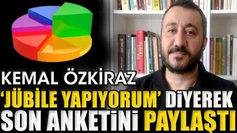 Gökhan Özbek ile birlikte 23 derece Youtube kanalında program yapan Kemal Özkiraz “Araştırmacı olarak görev aldığım son anketim. Yani araştırmacılık jübilemi yapıyorum. Araştırma işini artık Savaş arkadaşımız yapacak, biz Youtube yayınlarına devam edeceğiz” diyerek son anketi paylaştı.