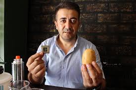 Bunlar saf 24 ayar altın kaplama ürünler. Evdeki atık elektronik eşyaları çöpe atacağımıza bunları evde kullanılan temizlik ürünleriyle işleyerek kendi madenimizi oluşturuyoruz. Bunları yakarak ya da evde kullanılan çamaşır suyu gibi temizlik ürünleriyle eriterek saf altın haline getiriyoruz. En iyi iletken olduğu için bütün elektronik cihazlarda altın, gümüş, paladyum ve bakır kullanılmıştır.” Elektronik atıklardan altın elde edilmesinin yaygınlaşmasını amaçladıklarını anlatan Cemil Şahin, “Herkes evinde 1 günde 1 gram altın yapabilir. Avrupalı yapabiliyorsa biz neden yapmayalım, dedik ve başardık. Altını patatesten çıkarıyoruz. Çünkü patatese altın yapışmıyor” dedi.