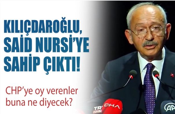 Kemal Kılıçdaroğlu, Hür Düşünce Hareketi Genel Kurulu toplantısında, Said Nursi ile ilgili açıklamalarda bulundu: “Bir ara Said Nursi’nin kitapları yasaklandı. Biz Anayasa Mahkemesi’ne başvurduk, kitapları yasaklayamazsınız diye. İsteyen gider kitabı alır, okur. Anayasa Mahkemesi bunu iptal etti. Sonra bana geldiler dediler ki bunu neden kamuoyu ile paylaşmadın diye. Kamuoyuyla paylaşırsak sanki biz oy için bunu yapıyoruz algısı çıkar. Biz oy için değil demokrasi için yapıyoruz. Kitap yasaklanmaz, 21’inci yüzyıldayız. Kitap yasaklanır mı, insanların inançlarına müdahale edilir mi? Allah ile kulun arasında girmeye kimin hakkı var? Kime bu yetki verildi?”