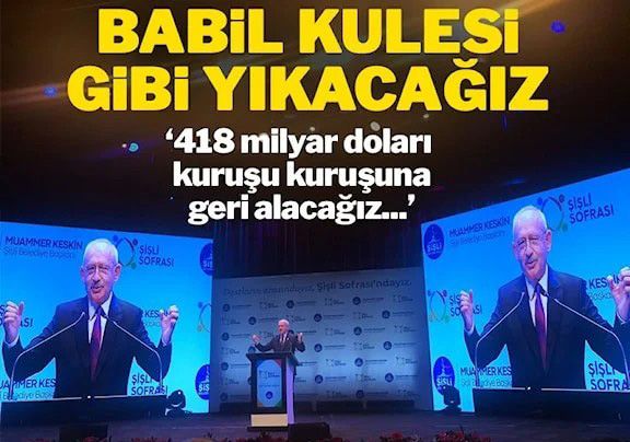 Belediyelerimiz bunun için canla başla çalışıyor. Tek bir yurttaşımızın dahi dara düşmesine asla razı değiliz. Halkın hakkı olan zenginliği ihalelerle yandaşlara peşkeş çeken egemenlerin düzeni, sarsılmaz sanılan Babil kulesi gibi yıkılmaya mahkumdur ve mutlaka yıkacağız. Milletimizin, önündeki seçimlerde bunun ne demek olduğunu gösterecek, buna yürekten inanıyorum. Halktan çalınan 418 milyar doları kuruşu kuruşuna aldığımızda halkın sofrası şenlenecek, hak yerini bulacak. Evet biz bunu başaracağız ve birlikte başaracağız.”
