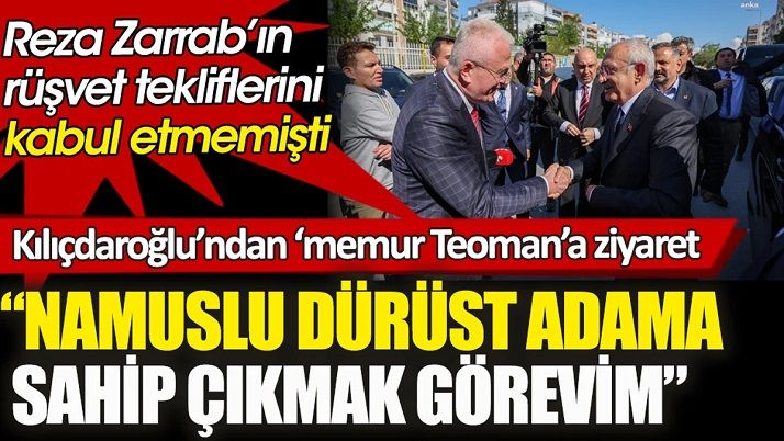 Millet İttifakı'nın cumhurbaşkanı adayı ve CHP lideri Kemal Kılıçdaroğlu, 'Memur Teoman' olarak bilinen ve Rıza Sarraf'tan rüşvet almayı reddeden Teoman Coşkun Dudak'ı ziyaret etti. Kılıçdaroğlu, "Memur Teoman gibi devlete sahip çıkan memurlara ihtiyacımız var dedi.