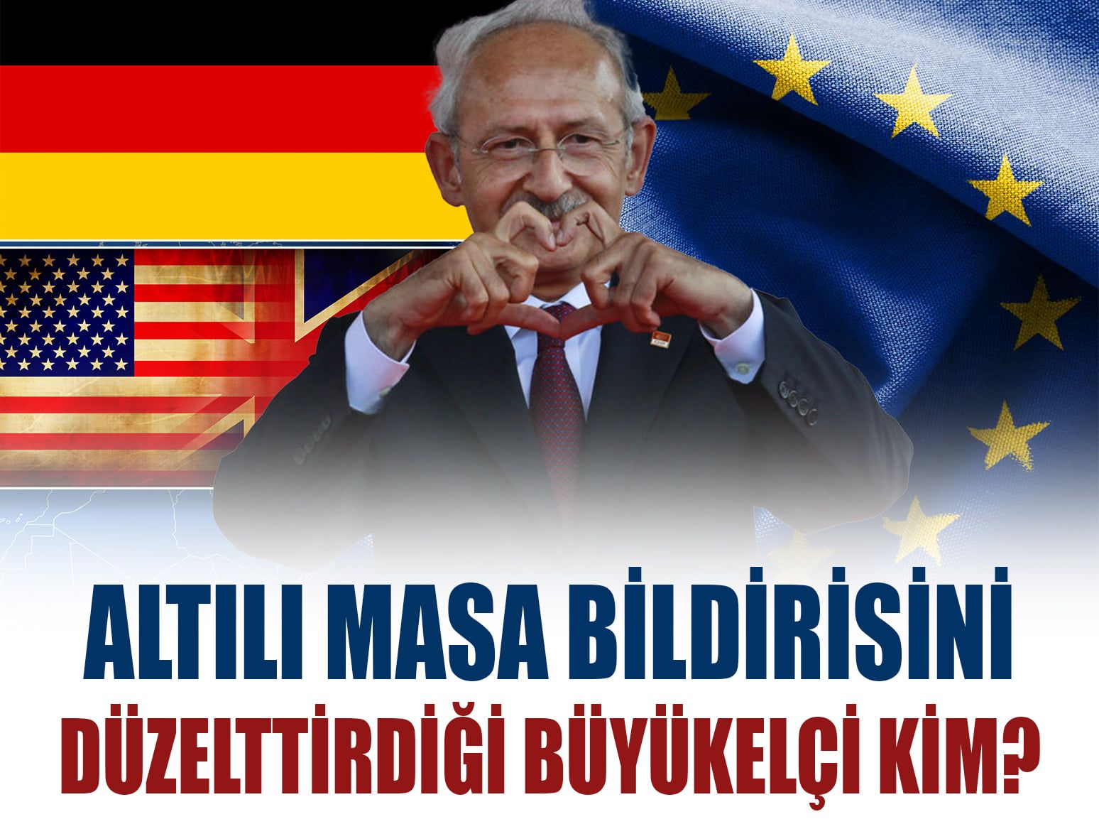 Yenişafak Genel Yayın Yönetmeni Hüseyin Likoğlu bügünkü köşe yazısında CHP Genel Başkanı Kemal Kılıçdaroğlu'nun altılı masa bildirisini düzelttirmek için Alman büyükelçiye gönderdiğini iddia etti.
