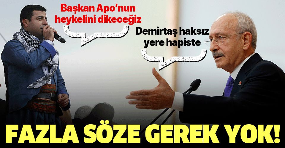 Kılıçdaroğlu yaptığı talihsiz açıklamada, "Başkan Apo'nun heykelini dikeceğiz, özerklik ilan edeceğiz" sözlerinin sahibi Demirtaş'ın haksız yere hapis yattığını iddia etti. İşte Kılıçdaroğlu'nun o açıklamaları