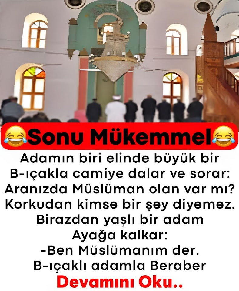 Adamın biri elinde büyük bir b-ıçakla camiye dalar ve sorar: