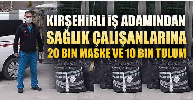Kırşehir'de faaliyet gösteren iş adamı Gökhan Dulkadiroğlu koronavirüse karşı canla başla mücadele eden sağlık çalışanlarına 20 bin cerrahi maske ve 10 bin tulum hediye etti.