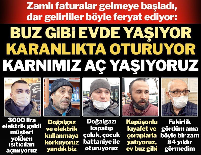 Enes Karadede: En düşük kademede (doğalgazı) yakıyoruz. Devir tasarruf devri. İnanın dışarıda simit bile yiyemiyoruz. Ahmet Durmuş: Ben hayatımda böyle bir zam görmedim. 84 yaşındayım, fakirlik gördüm ama böyle bir zam görmedim.