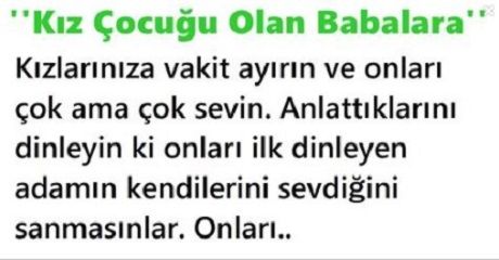 Kızlarınıza vakit ayırın ve onları çok ama çok sevin. Anlattıklarını dinleyin ki onları ilk dinleyen adamın kendilerini sevdiğini sanmasınlar. Onları güldürün, birlikte eğlenin ki beraber eğlendikleri ilk adamın peşine takılıp gitmesinler.