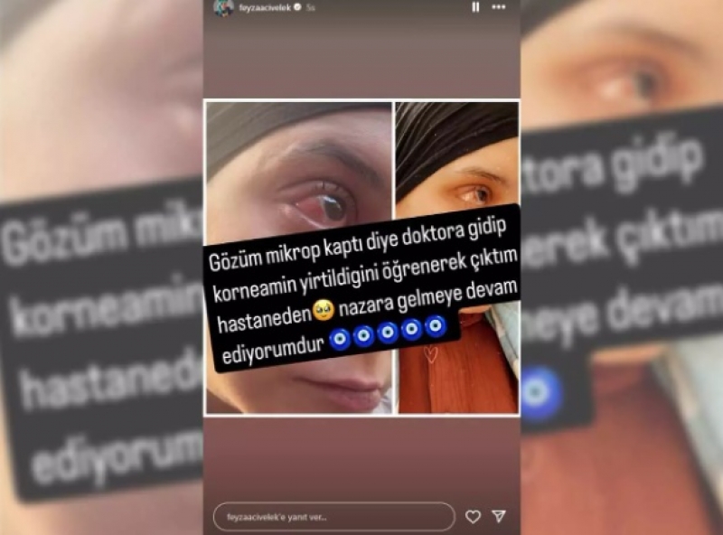 Oyuncu Feyza Civelek hayranlarını üzen bir haber paylaştı. geçtiğimiz günlerde kolu kırılan ünlü oyuncu bu kez de yapılan göz muayenesinde korneasında yırtık tespit edildiğini paylaştı.