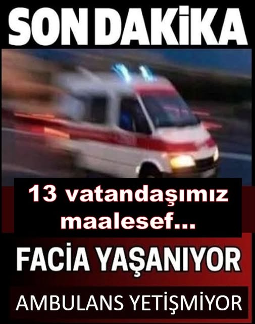 Gelen son dakika haberine göre 13 vatandaşımızdan k.ötü haber geldi.Malesef az önce duyruldu.Ambulans yetişmedi...Haberin devamını okumak için üstteki görselden diğer sayfaya başvurunuz.