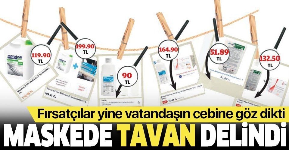 Cerrahi maskede 1 TL olarak belirlenen fiyatları arkadan dolanarak delen mağazalar bu kadar da olmaz dedirtiyor. Dezenfektanın yanına maske ekleyerek paket yapan uyanıklar maske fiyatını da katlıyor. Örneğin bir litrelik dezenfektan ve 50'lik pakete 132 TL fiyat koyarken, aynı dezenfektanın tekli satışındaki etiket fiyatı 50 TL. Bu durumda 50'lik maskenin fiyatı 82 liraya gelirken bir adet maske de 1.60 liradan satılarak tavan fiyat deliniyor.