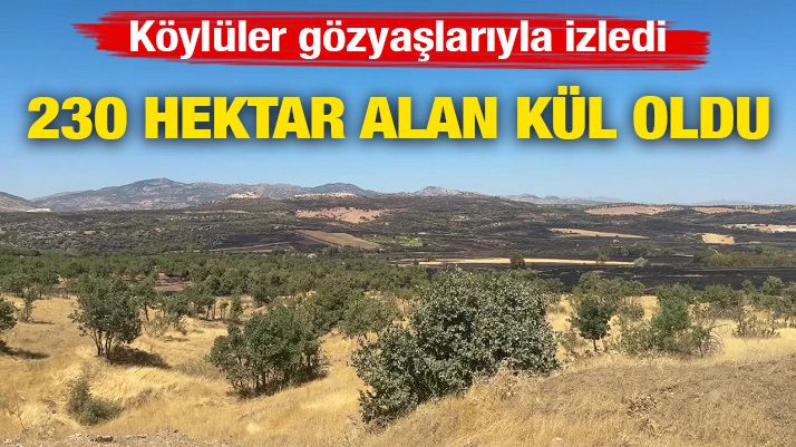İlk belirlemelere göre yangında 165 hektarı ziraat, 65 hektarı ormanlık olmak üzere toplam 230 hektar alanın zarar gördüğü tespit edildi.